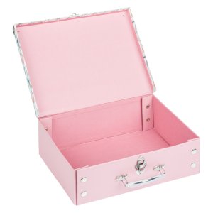 • Skládací kufřík z pevného laminovaného papíru s okovanými rohy.