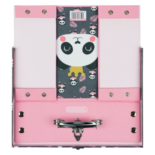 • Skládací kufřík z pevného laminovaného papíru s okovanými rohy.