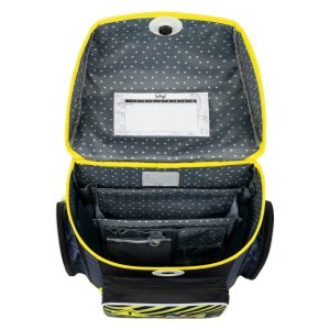 • Uvnitř aktovky je průhledná kapsa s rozvrhem a vnitřní organizér umožňující rovnoměrné rozložení hmotnosti.