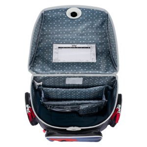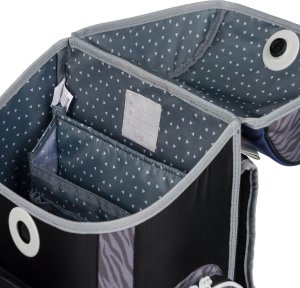 • Uvnitř aktovky je průhledná kapsa s rozvrhem a vnitřní organizér umožňující rovnoměrné rozložení hmotnosti.