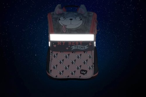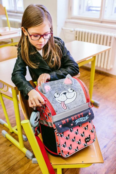 • Ergonomická školní aktovka s vyztuženým tělem, vnitřním organizérem a třemi oddělenými kapsami.