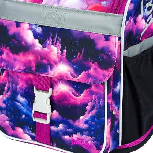 • Uvnitř aktovky je průhledná kapsa na rozvrh a vnitřní organizér umožňující rovnoměrné rozložení hmotnosti, doplněný gumičkou pro fixaci.