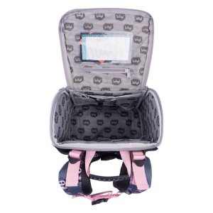 • Uvnitř aktovky je průhledná kapsa s rozvrhem a vnitřní organizér umožňující rovnoměrné rozložení hmotnosti, doplněný gumičkou pro fixaci.