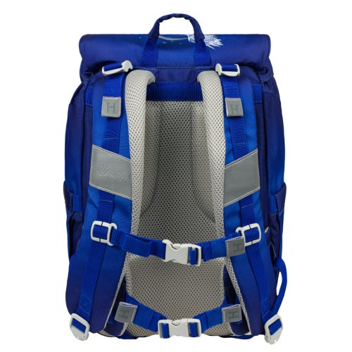 • Jednokomorové vnitřní uspořádání s kapsou a gumičkou pro uchycení desek na zádové straně slouží ke snadné organizaci všech školních pomůcek.