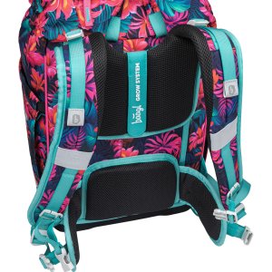 • Ergonomicky tvarovaná záda doplňují plně nastavitelné ramenní popruhy s prodyšným polstrováním, odnímatelný bederní pás a hrudní popruh, které zaručují maximální komfort, stabilitu a správné rozložení zátěže na dětských zádech.