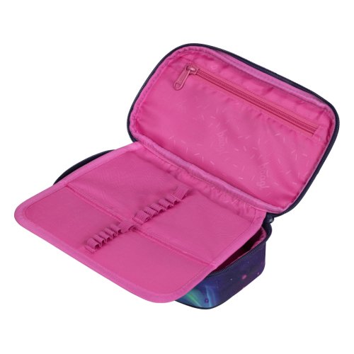 • Kompaktní penál na zip s prostornou hlavní komorou a dvojitou výklopnou chlopní nabízí dostatek prostoru pro psací potřeby i drobnosti. • Součástí penálu je také vnitřní kapsa a okénko na rozvrh hodin. …