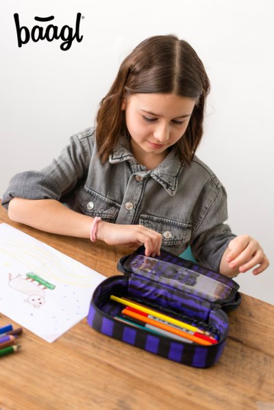 • Pevný školní penál s výklopnou vnitřní přepážkou.