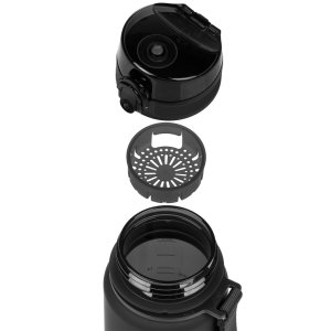 Uzamykatelné víčko nepropustí ani kapku nápoje a zaručuje jednoduché a intuitivní používání. Součástí láhve je i sítko, díky kterému můžete láhev použít i na limonády s ovocem nebo čaj (materiál je vhodný i pro horké nápoje). K láhvi je připevněné také poutko pro pohodlné nošení v ruce.