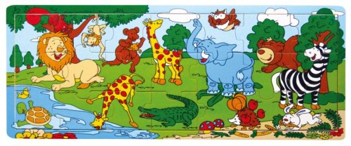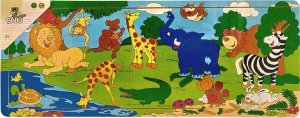 Slon, opička, zebra, žirafy a další zvířátka vesele dovádějí ve volné přírodě. Dokážeš pojmenovat i další zvířátka na obrázku? Dřevěné puzzle s 21 dílky na dřevěné desce s pevným okrajem, která slouží zároveň jako podložka pro skládání. Skládání puzzle rozvíjí dětskou fantazii a podporuje motoriku. Doporučeno pro děti od 2 let. Rozměr složeného puzzle cca 45 x 18 cm