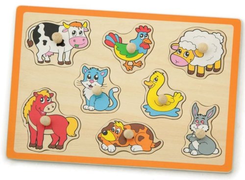 Dítě se podle obrysů a tvaru snaží najít správný obrázek (rozvoj představivosti a logického myšlení), a umístit jej do správného otvoru (rozvoj jemné motoriky). Díky obrázkům se děti učí poznávat zvířátka, která žijí na statku.
