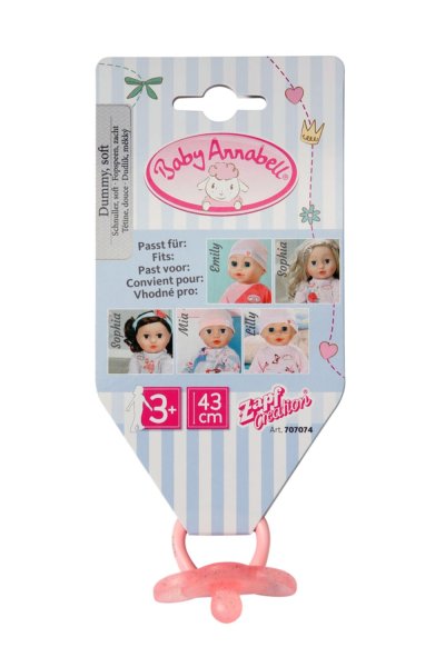 Konečně je tu perfektní dudlík pro všechny kamarádky panenky Baby Annabell. Dudlík s měkkou dudlací částí se hodí pro sladké pusinky panenek Baby Annabell s měkkým tělíčkem velikosti 43 cm. Ať už Mia, Sophia, Lilly nebo nově Emily, nyní si může každá z nich vychutnávat dudlík, kdy se jim zachce. Dudlík je dostupný ve svěží mátově zelené nebo klasické růžové barvě. Obě barevné verze zdobí třpytivé detaily. Skvělý doplněk na každý den. • Originální doplněk pro panenky Baby Annabell. • Pečlivě navržené doplňky rozvíjejí dětskou představivost a otevírají nové možnosti a témata hry. Baby Annabell měkký dudlík pro panenky Miu, Sophii, Lilly a Emily.