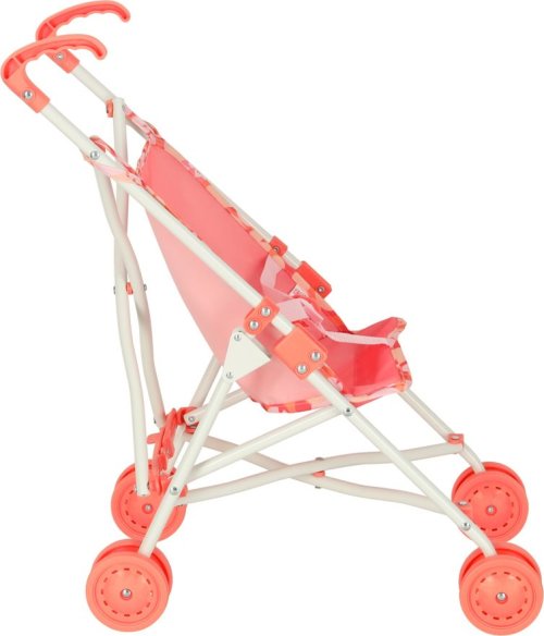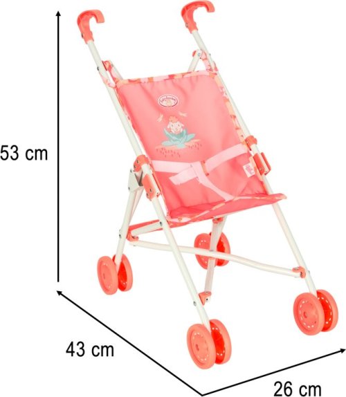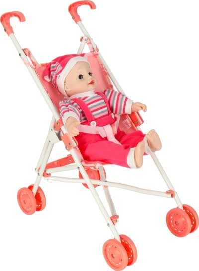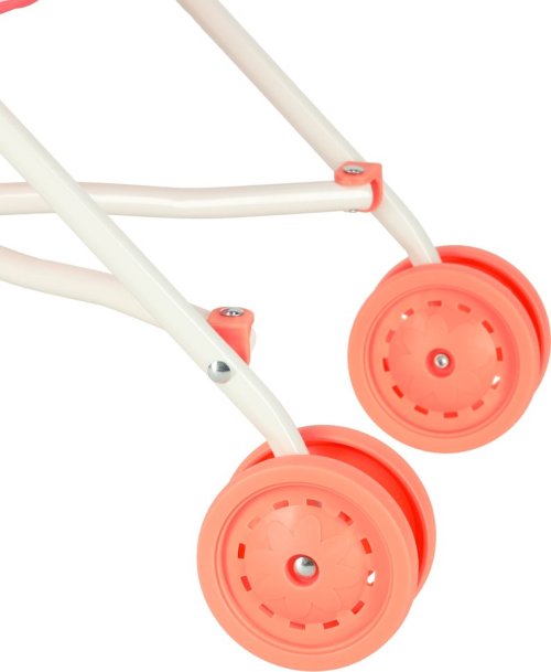 Dětský moderní kočárek, ve kterém se panenkám nebo plyšákům ihned zalíbí. Růžový kočárek pro panenky je hračka, která děti přenese do světa fantazie a umožní jim napodobovat roli rodičů jejich oblíbených panenek. Kočárek je vybaven čtyřmi pevnými plastovými kolečky o průměru 7,5 cm, která zajišťují snadnou ovladatelnost při hře. Výška kočárku byla navržena s ohledem na mladší děti, což jim umožňuje pohodlné ovládání kočárku. Díky skládacímu designu lze kočárek rychle složit, což výrazně usnadňuje jeho skladování a přepravu. Hračka podporuje rozvoj dětské kreativity, empatie a sociálních dovedností. Technické specifikace: