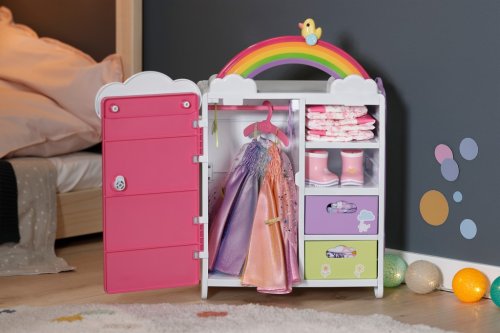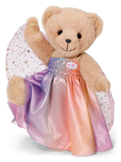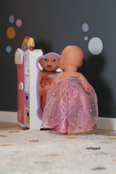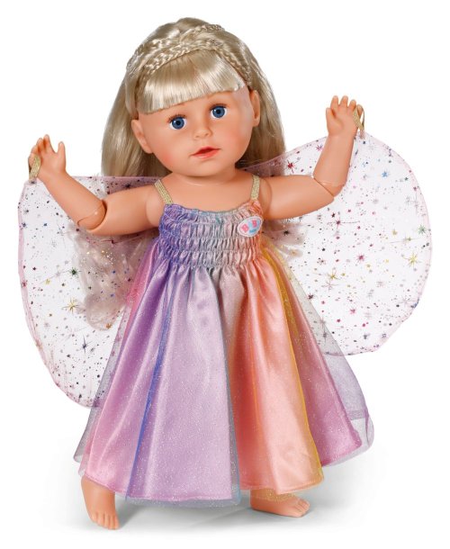 Nápadité duhové šatičky vybízejí ke snění: s našitými křidélky se BABY born vznáší dnem jako víla. Aby mohla mávat křidélky, mají šatičky našitá malá poutka na ruce. Šatičky se třpytí všemi barvami duhy.