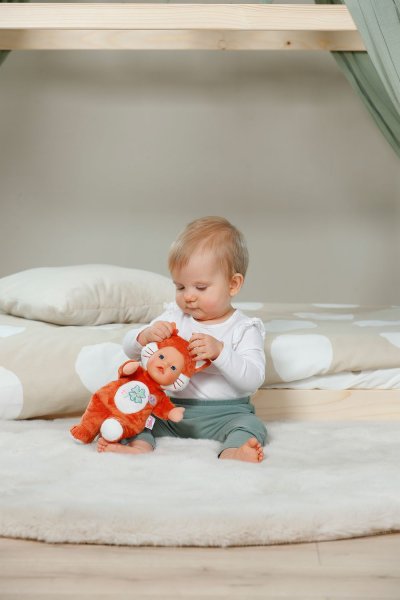 Nejroztomilejší kamarád v pokojíčku vašeho miminka! Lištička BABY born for babies je navržena pro miminka. Má měkkou vinylovou hlavičku a látkové tělíčko s kapsičkami na prsty, díky kterým lištička ožije a promění se ve veselého maňáska s liščím ocáskem. Měkká a hebká panenka je ideální na mazlení a nemusíte se bát ani toho, když se zašpiní. Lze ji snadno prát na 30° C.