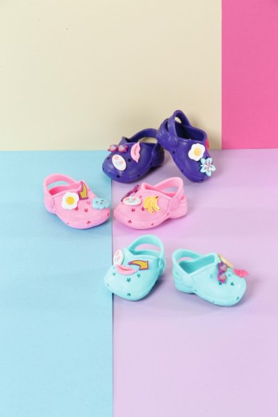 Nožičky v bezpečí na pláži i u bazénu: barevné gumové sandálky nejen ochrání malé nožičky, ale také vypadají mimořádně stylově. Nacvakávací ozdoby lze použít k vytvoření vlasního vzhledu botiček - takže záměna rozhodně nehrozí.
