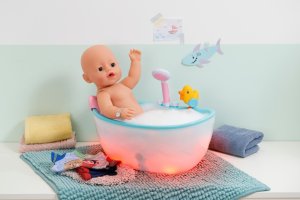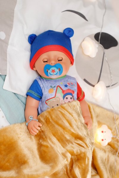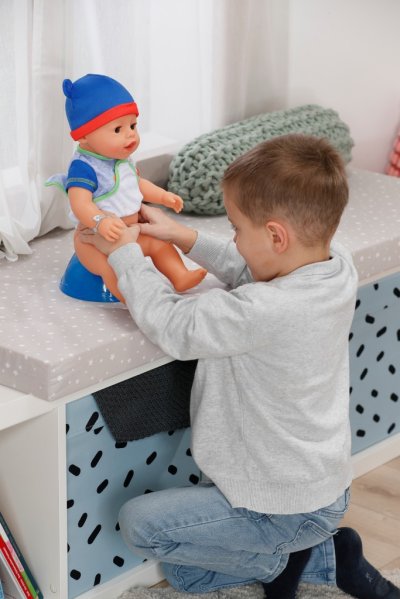 Představujeme Jonase! Panenku Jonase, známého z animovaného seriálu BABY born, který můžete sledovat na kanále BABY born v češtině na Youtube, můžete mít nyní i doma. V novém oblečku a s 10 doplňky. Přináší si s sebou i kouzelný talířek: když do talířku s bílou destičkou uvnitř dáte trochu vody, objeví se na destičce lahodné jídlo s roztomilým obličejem, které z krmení panenky udělá ještě větší zábavu. Když Jonase po nakrmení (vodou) nebo po napití vody z lahvičky posadíte na nočník a zmáčknete mu bříško, objeví se na destičce v nočníku obrázek čůrání a kakání. Když se Jonas napije vody z lahvičky, může ronit slzy a je třeba ho utišit. Pomoci může třeba kouzelný dudlík: když ho v pusince otočíte o 180 stupňů, očička se mu buď otevřou nebo zavřou. Otočte ještě jednou a stane se opak. Jonas ale dokáže ještě víc: má pohyblivé klouby a můžete ho vzít i do vany. Nyní dokonce uschne rychleji, než kdy dříve: abyste panenku po hraní dobře vyčistili, je k tomu možné odejmout jednu nohu a vytvořit tím větší otvor pro čištění panenky. Voda tak z panenky snadněji odteče. Pro ještě zajímavější hru si Jonas do svého nového domova kromě lahvičky, dudlíku, talířku s destičkou s obrázkem jídla a nočníku s destičkou s obrázkem čůrání a kakání přináší také plenku, rodný list, arch samolepek a dva náramky přátelství – jeden pro panenku a jeden pro její malou maminku – na důkaz dlouhého a láskyplného kamarádství mezi dítětem a panenkou. V kvalitě BABY born, která těší celé generace dětí už od roku 1991.