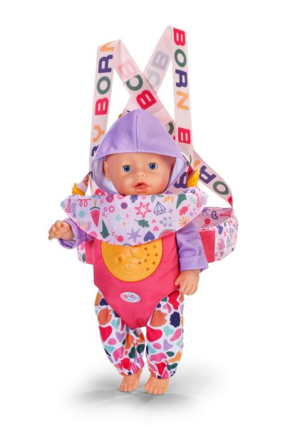 BABY born Klokanka s nastavitelným systémem popruhů a nacvakávacími ozdobami. • Nastavitelný systém popruhů: Vhodný pro různě velké děti. • Jedinečný design: S nacvakávacími ozdobami a krabičkou na jejich uložení. • Ideální na cesty: Oblíbená panenka může být vždy u své malé maminky. • Podporuje „hraní si na“ a rozvoj péče o druhé. • Pro panenky velikosti 36 cm a 43 cm. • Kvalitní doplněk pro radost z nápadité, rozmanité a dlouhotrvající hry.