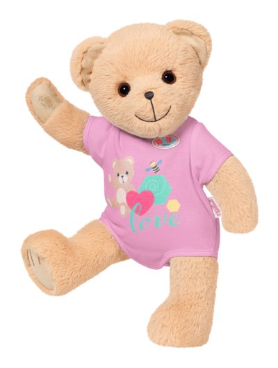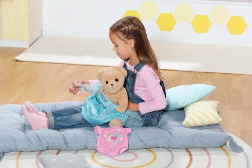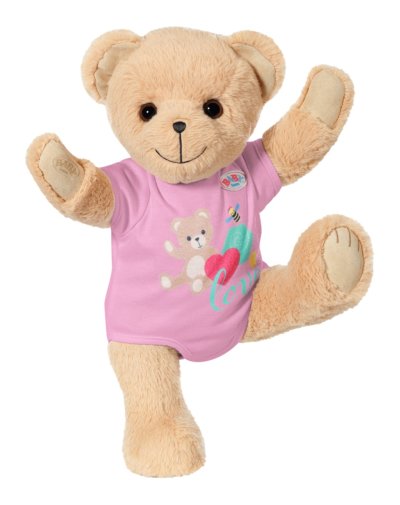 Nový kamarád pro panenky BABY born a pro všechny fanoušky BABY born. Nebo je to kamarádka? Na tom nezáleží, medvídek může být čímkoli: holčičkou, chlapečkem, miminkem, plyšovým medvídkem, kamarádem na hraní, mazlíčkem, princeznou nebo třeba jezdcem na skútru – od útlého věku až do doby, kdy už je dětství jen vzdálenou vzpomínkou. Malý medvídek se sladkým úsměvem má měkké tělíčko. Je oblečen do slušivého růžového oblečku. Má svou vlastní módní kolekci a medvědí doplňky, ale může nosit i téměř cokoliv, co nosí panenka BABY born. Může používat i její doplňky. Medvídek je navržen tak, aby mu sedělo téměř všechno oblečení pro BABY born velikosti 43 cm. Jen její botičky neobuje. Ale který medvídek by potřeboval botičky? Díky pohyblivým ručičkám a nožičkám a otáčecí hlavičce ho lze snadno převlékat. Je velmi pohyblivý, a proto je skvělým společníkem pro hraní různých her. Kdo jako první něco napíše do knížky přátelství? Součástí knížky přátelství je i arch samolepek. PS: V novém animovaném seriálu BABY born nechybí samozřejmě ani medvídek Teddy. Spolu s BABY born Emmou a jejími přáteli zažívá vzrušující dobrodružství. Neváhejte se podívat na náš kanál BABY born v češtině na YouTube!