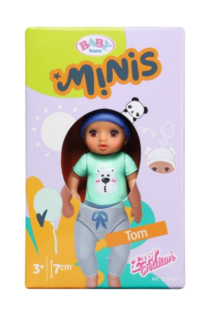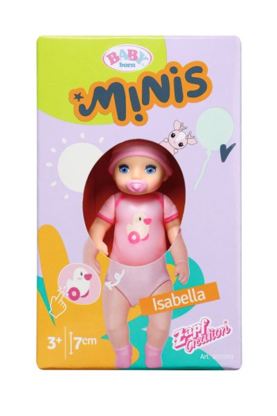 Panenky BABY born Minis se díky své praktické velikosti 7 cm vejdou do každého batůžku nebo kabelky a děti si je mohou vzít všude s sebou. Každá z figurek je jedinečná. Roztomilá miminka mají malé zvířecími kamarády a některé i efekt změny barvy. Pohyblivé ruce, nohy a hlava zaručují, že se hraní s panenkami promění v nezapomenutelný zážitek a sbírání panenek tak bude ještě zábavnější! • Panenky BABY born Minis na hraní i sbírání. • Součástí je malý sběratelský plakátek a aršík se samolepkami BABY born Minis.