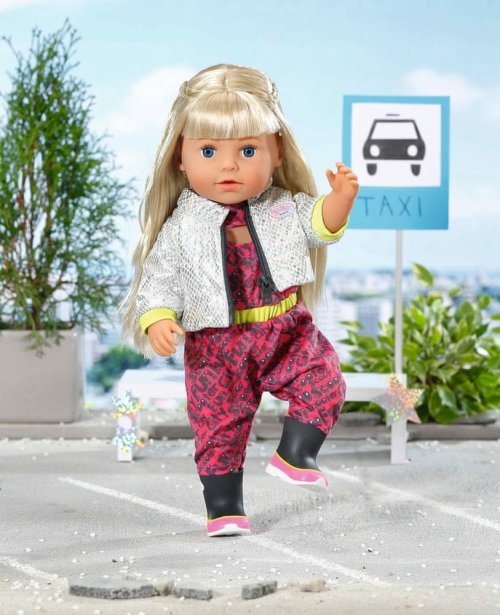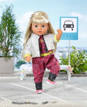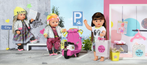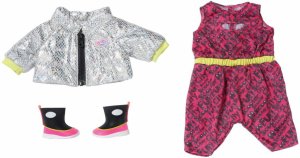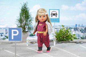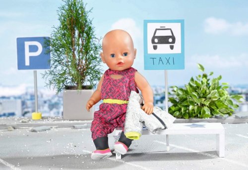 Rychle do města, aby BABY born stihla setkání s kamarády na hřišti v parku. Na takové akce je nejlepším dopravním prostředkem skútr. A k němu je třeba i správné oblečení. Růžový overal se stylovým písmenkovým potiskem je přesně to pravé. Navíc je i úžasně pohodlný. Barevně sladěné boty a stříbrná bunda celý outfit krásně doplní.