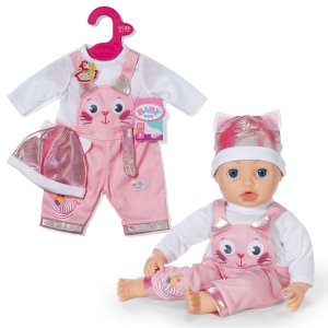 V tomto kočičím overalu s dlouhými rukávy a laclovými kalhotami s potiskem se BABY born promění v malou mazlivou kočičku. Čepička s roztomilýma kočičíma ušima dokonale doplňuje celý outfit. Na nohavici kalhot je potisk, kde si kačenka Berta hraje s klubíčkem vlny. Chce se kočička Cookie připojit k zábavě? • Set - overal a čepičky ve stylu kočičky • Overal s dlouhými rukávy a laclovými kalhotami • Čepička s roztomilýma kočičíma ušima • Hravý potisk: kačenka Berta si hraje s klubíčkem vlny na nohavici • S ramínkem z recyklovaného materiálu • Vhodné pro panenky velikosti 43 cm • Pro rozšíření kreativní a pestré hry