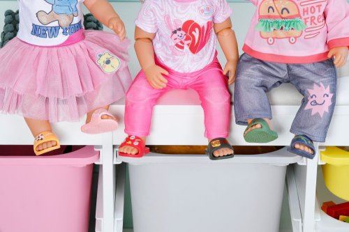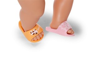 S těmito barevnými pantofli může BABY born vesele procházet teplými letními dny. • Stylové barevné pantofle • Vhodné pro panenky velikosti 43 cm • Kvalitní doplňky pro radost z nápadité, rozmanité a dlouhotrvající hry