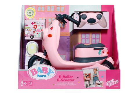 Nejlepší způsob, jak se pohybovat po městě, je na skútru. A proto i BABY born vyráží do ulic se svým novým moderním elektrickým skútrem. Dá se ovládat dálkovým ovládáním a jezdí dopředu i dozadu. Elektrický skútr jako je tento je samozřejmě také nutné nabíjet. Při připojení k nabíjecí stanici se rozsvítí zadní světlo, aby hra na nabíjení byla autentická (samotné nabíjení není skutečné). Šťastnou cestu, BABY born! Rozměry balení 42x36x22 cm. Napájení na 2xAAA a 4x AA baterie - nejsou součástí balení. Věk 3+