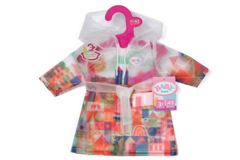 Kabátek BABY born vnáší barvu do deštivých herních dní. Díky barevnému potisku a praktické kapuci zůstane panenka v suchu i za nepříznivého počasí. Lehký materiál a jednoduchý střih usnadňují oblékání. Ideální na procházky, výlety i městská dobrodružství v dešti. Vhodné pro panenky velikosti 43 cm i pro BABY born medvídky. Věk 3+