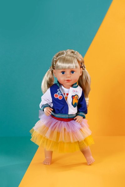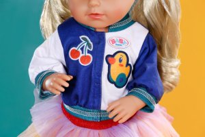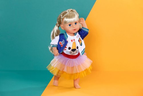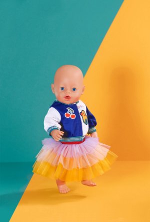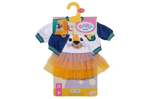 Barevný akcent nejen na pochmurné dny. Outfit s tričkem s tygří tváří, cool bunda, a tutu sukýnka ve žluté, oranžové a fialové barvě zaručuje dobrou náladu. Věk 3+