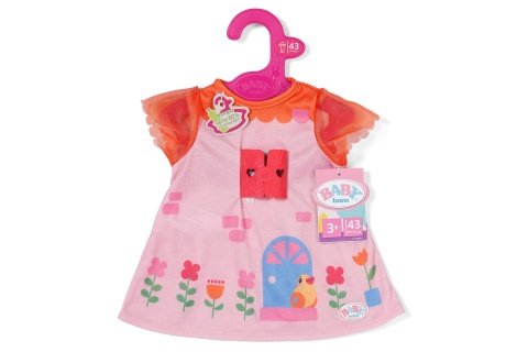 Tyto šatičky spojují módu a hru v jeden kouzelný celek. Motiv domečku zve k vyprávění příběhů, návštěvám kamarádů i novým dobrodružstvím. Praktický střih usnadňuje převlékání. Vhodné pro panenky velikosti 43 cm i pro medvídka BABY born. Věk 3+