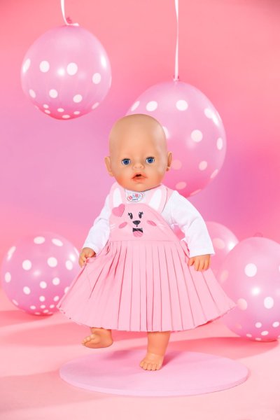 Malá parádnice BABY born má ve své skříni některé doslova sváteční kousky. Jsou ale tak krásné, že by je BABY born nejraději nosila pořád. Třeba na tyhle šatičky se těší, že je bude nosit nejen o Velikonocích. Na horní části růžových šatiček je vidět radostný obličej zajíčka. Ouška mu přecházejí přímo do kšand. Vespod je k šatům všito jako 2v1 tričko s dlouhým rukávem. S plisovanou sukýnkou si někdo dal opravdu hodně práce, aby ji tak přesně složil. BABY born Šatičky zajíček pro panenky velikosti 43 cm. Včetně ramínka.