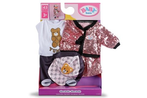 Tento třpytivý outfit promění BABY born v malou třpytivou hvězdu. Flitrovou sukni a bundu v růžových tónech doplňují legíny, tričko a čepice s aplikací medvídka. Stylový komplet je ideální pro slavnostní příležitosti i každodenní hry plné fantazie. Věk 3+