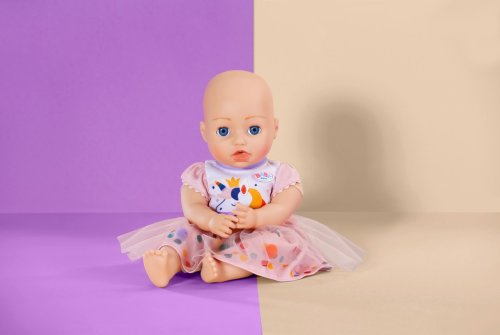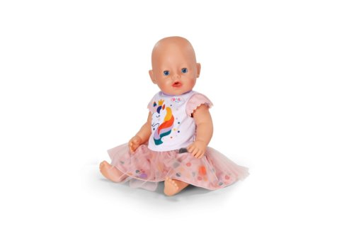 Krásný obleček pro vaši panenku BABY born. Velikost oblečení 43 cm. Světlý 2dílný set (triko s motivem jednorožce a tutu sukně s bambulkami). Věk 3+