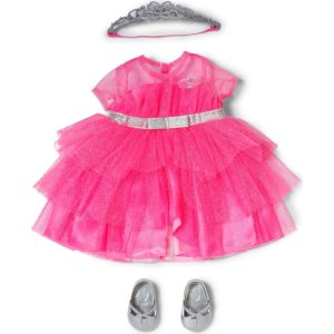 BABY born princeznovský outfit s růžovými šatičkami, korunkou a botičkami pro panenky velikosti 43 cm. • Růžové princeznovské šaty z nadýchaného tylu • Třpytivý materiál a stříbrný pásek • Se stříbrnou korunkou a elegantními botičkami • Vhodné pro panenky velikosti 43 cm a pro medvídky BABY born Teddy • S ramínkem z recyklovaného materiálu • Kvalitní doplněk pro radost z nápadité, rozmanité a dlouhotrvající hry