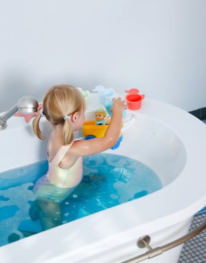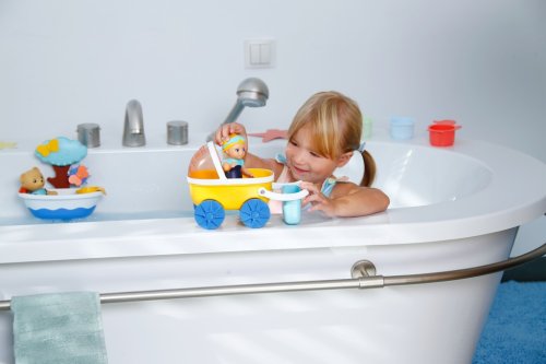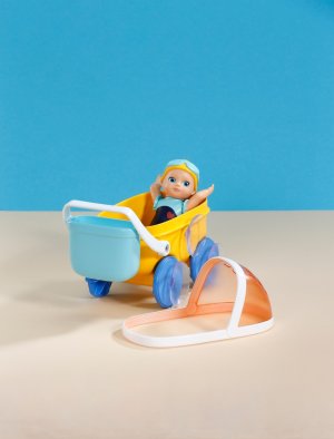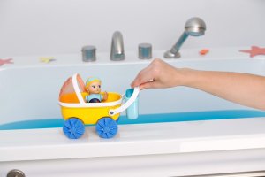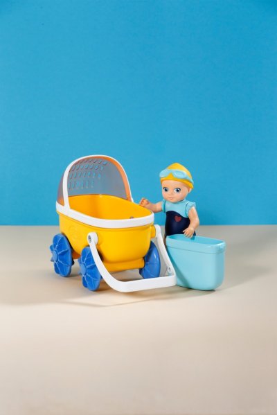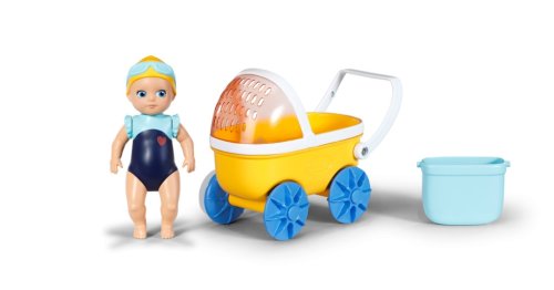 Skvělá vodní zábava s Emmou a jejím kočárkem – ve vaně i v dětském pokojíčku.BABY born Emma má praktickou velikost, natištěný koupací obleček a mechanickou funkci plavání • Kočárek s odnímatelnou nádobkou a sluneční clonou • Stříška kočárku slouží také jako vodní sítko • Otočná kola pro vodní hry nebo jízdu po dětském pokojíčku • Vhodné pro děti od 1 roku