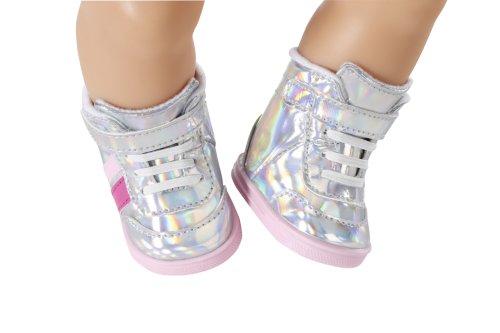 BABY born si libuje v těch nejskvělejších botičkách. Vysoké holografické boty září již z dálky. Módní tenisky jsou po stranách ozdobeny pruhy ve světle a tmavě růžové barvě. Po důkladném zavázání a zpevnění suchými zipy v nich může BABY born běžet třeba až na konec světa.