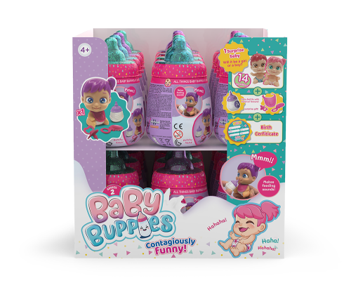 Baby Buppies miminko je vhodné pro děti od 4 let. Vydává reálné zvuky jako opravdové miminko. Zatřes s panenkou, bude se vesele smát.