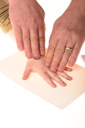 speciální barva s aplikátorem na otisky dětských ručiček a nožiček do deníčků, památníčků atd.