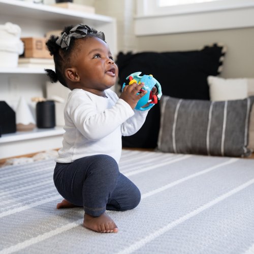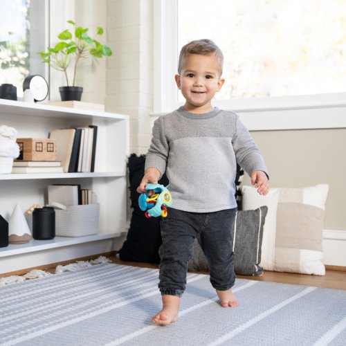 Třeste a objevujte! Senzorická hračka je ideální hračkou pro děti od 3 měsíců, které začínají objevovat svět přes dotek, zvuk a barvy. Tento míček lehce padne do držadla a nabízí řadu smyslových podnětů, které podporují vývoj miminka a učení hrou. Tři korálkové dráhy pomáhají rozvíjet jemnou motoriku a různé textury jsou ideální pro hmatové objevování. Miminka milují sledování pohybujících se korálků a učí se principu příčina-následek, když každé zatřesení vytvoří zvuk! Zářivé barvy a výrazné vzory podporují zrakový vývoj. Hračka byla nezávisle testována a schválena z hlediska bezpečnosti. Objevování nikdy nebylo zábavnější!