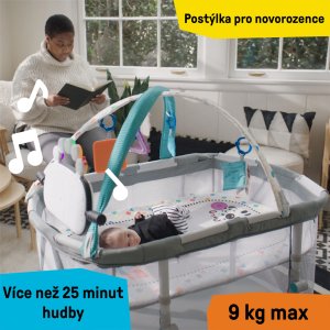 V režimu Bassinet naleznete útulné místo k odpočinku. Přepínáním klavíru do režimu Melody si užijete více než 25 minut uklidňující hudby a světel, které nejen uspávají, ale také povzbuzují k natažení se po visacích hračkách. Prodyšné síťované strany umožňují vysokou viditelnost a pratelná plachta pro snadné čištění, jsou ideální pro každodenní používání. Přepněte na režim Activity Gym odstraněním matrace a hrazdičky a vychutnejte si 70+ melodií a frází ve 4 jazycích při hře na bříšku v nastavení Discovery nebo si zahrajte hudbu v režimu klavíru. Režim Playard poskytuje batolatům prostor pro hraní s oddělenými hračkami. S cestovní taškou a jednoduchým 3-krokovým skládacím designem je přenášení opravdu hračkou.