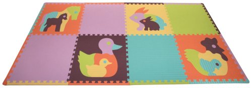 Velká hrací plocha s okraji a motivem barevných zvířátek. Pěnové puzzle v moderních barvách s různorodou povrchovou strukturou pro Vaše nejmilejší. Koberec se skládá z osmi velkých čtvercových dílů a dvanácti okrajových dílků. Čtyři díly mají vyjímatelné části a čtyři díly jsou bez vyjimatelných obrázků. Rozměr jednoho dílku: 60 x 60 cm (měřeno bez okraje od zubu po výřez). Rozměr složeného puzzle: cca 244 x 124 cm. Bezpečná a měkká podložka je omyvatelná, tlumí hluk a izoluje od chladu, je proto ideální jako hrací koberec nejen do dětských pokojů. Různé barvy, tvary dílků a struktury povrchu stimulují smyslové vnímání. Při skládání si s dětmi užijete nejen spoustu zábavy, ale zároveň podpoříte rozvoj fantazie a motoriky. Doporučeno pro děti od 3 let. Neobsahuje ftaláty, kadmium, amoniak, ani formaldehyd. Poznámka: Barevné provedení je ilustrativní a může se lišit.