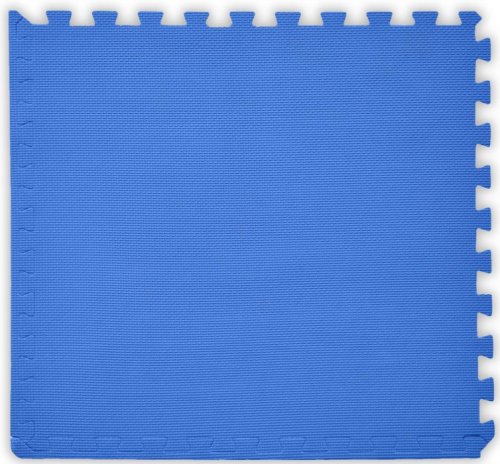 Omyvatelné pěnové podlahové puzzle v modré barvě v rozměru cca 61x61cm v nadstandardní síle 1,9 - 2 cm. Pěnový koberec je vyrobený z EVA pěny a má vroubkovaný povrch bez vyjímatelných částí.