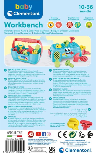 Výrobek patří do ekologického programu CLEMENTONI Play for Future , který byl vytvořen s cílem sdělit dětem důležitost udržitelnosti a ochrany životního prostředí. Rozměry dílny: 23 x 18 x 14 cm Délka nářadí: cca 10 cm