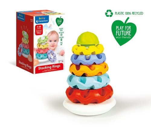 5 barevných kroužků různých velikostí, které se dají naskládat na kolébku. Kroužky jsou vyrobeny s různými povrchy, aby stimulovaly hmatové vnímání dětí od prvních měsíců života. Podporuje rozvoj manuálních dovedností a zrakového vnímání. Stimuluje dítě k rozpoznávání barev, tvarů a velikostí a vztahů příčin a následků. Rozměry balení: 15 x 15 x 24cm. Věk: 6m+