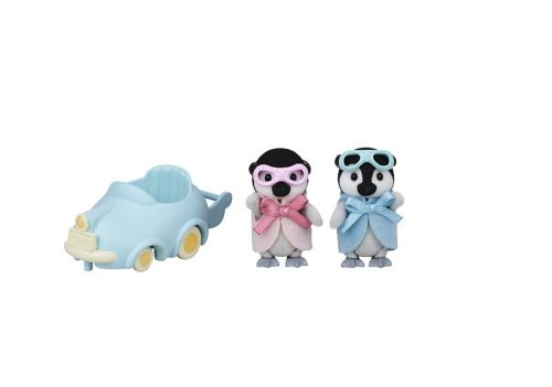 Tučňáčí dvojčata Pearl a Rocky spolu s vozíkem a leteckými brýlemi. Oba tučňáci můžou jezdit na vozíku. Všechny končetiny jsou pohyblivé a hlavička otáčecí. Zkombinujte s rodinou tučňáků (prodává se samostatně) pro zábavu se všemi pěti figurkami tučňáků. Přiložený vagón lze připojit k dalším vozíkům. Stimuluje nápadité hraní rolí u dětí. Vhodné pro děti od tří let.