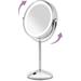 Zrcátko s průměrem 19 cm nabízí dostatečně velkou plochu pro pohodlné používání, přičemž stolní umístění zajišťuje stabilitu během použití. Napájení prostřednictvím 3 AA baterií garantuje mobilitu a nezávislost na elektrické síti.