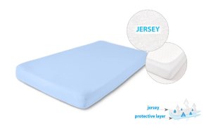 Jersey je klasické bavlněné prostěradlo s inovativním systémem všívání gumy v tunelu, díky čemuž prostěradlo dokonale přiléhá k matraci a zabraňuje protržení gumy. Vrchní vrstva prostěradla je vyrobena z měkké látky zabraňující podráždění pokožky, ale spodní vrstva je vyrobena z PVC.