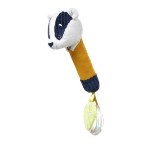 Měkká pískací hračka s chrastítkem jezevec Edmund z kolekce Play More Collection je skvělým společníkem na hraní a učení. Myšlenkou této kolekce na hraní je podnítit dětskou zvědavost a povzbudit je, aby se učili prostřednictvím hry. Umožňuje dítěti získat nové dovednosti, a kognitivní dovednosti.Po stisku vydá hračka zvuk pískání, což vzbuzuje zájem a ukazuje vztah příčiny a následku.Jemné chrastítko s korálky uklidní každé děťátko.Živé barvy a silné kontrasty podporují rozvoj zraku a různé textury materiálů rozvíjejí hmatové dovednosti dítěte. kvalitních materiálů s důrazem na každý detail.Hračka splňuje bezpečnostní normy platné v Evropské unii.