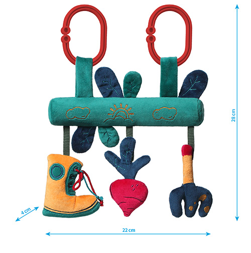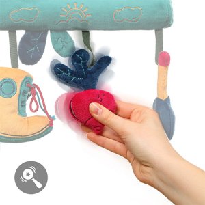 Vzdělávací hračka seznámí vaše dítě s rozmanitým světem barev, zvuků a tvarů. Tvar hračky v podobě hrazdičky umožňuje zavěšení na všechny druhy autosedaček nebo kočárků. Díky tomu může dítě doprovázet během cestování a procházek.