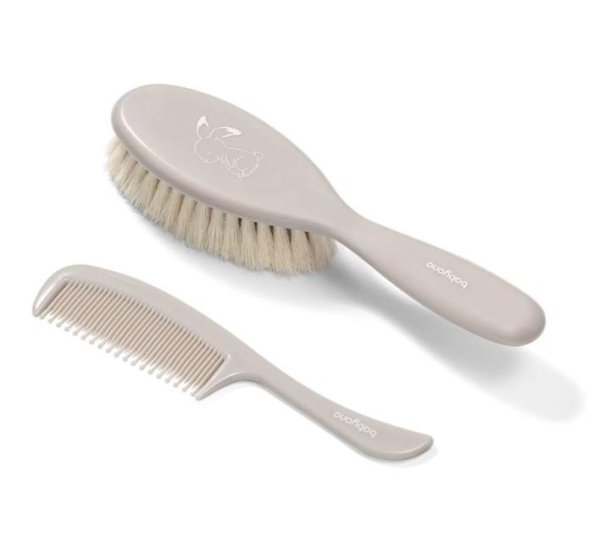Kartáček a hřeben na vlasy. Kartáček s měkkými naturální štětinkami je určena na masírování hlavičky kojence a ošetřování jeho prvních vlásků. Obsahuje měkké zaoblené tvary, štětinky nedráždí a neelektrizují pokožku. Správné masírování hlavičky kartáčkem posiluje vlasy a urychluje jejich růst.